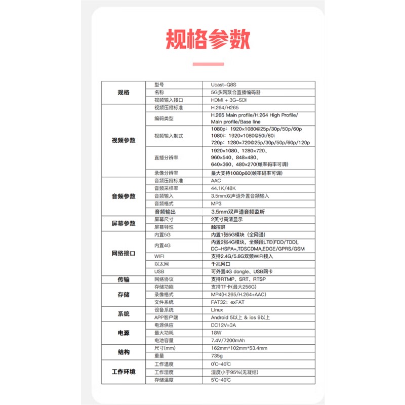 ucastq8s 5G多網聚合直播編碼器HDMI SDI高清視頻微贊微信多平臺推流設備 Ucast Q8S